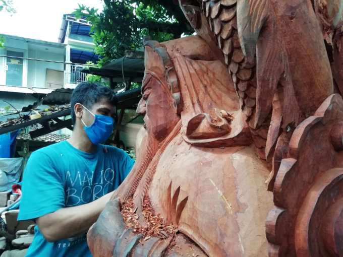 “Tahun ini, mendekati Imlek jauh menurun sekitar 60 persen penurunannya. Saat ini pesanan hanya ada dari pasar lokal, itu pun hanya 12 patung dewa saja,” ujarnya saat ditemui di workshopnya, Kamis (28/1/2021).